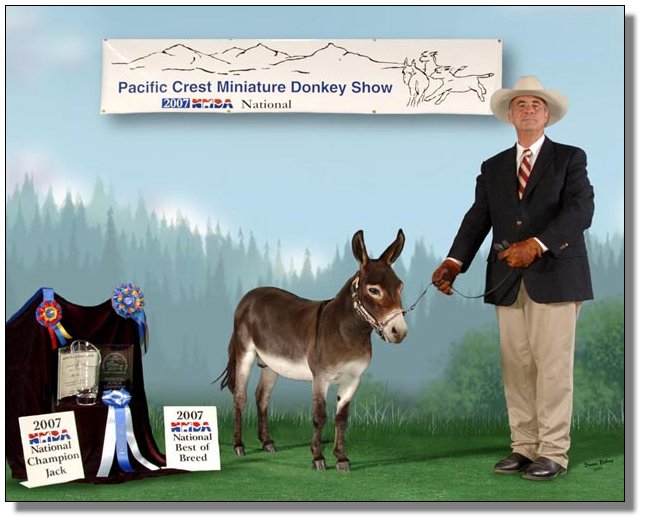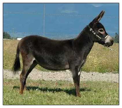I don't say that a donkey is stunning very often, but this little girl truly earns the title. It's not a surprise since her dam is a Best of Breed winner and her grandfather is a National Champion and National Best of Breed winner. She knows she's beautiful and demands to be noticed at all times. |