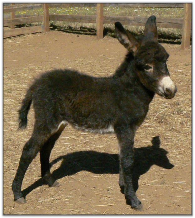 Talk about a beauty.....this little girl has it all!! This is Pennington's second foal & I could not have asked for a more perfect baby. Ava-Luna's Dam, Lilah, is one of my most favorite donkeys and she has never given me anything but perfection!! She puts a special stamp on her foals that is very noticeable and Ava is no exception. This little girl is the spitting image of Lilah, right down to her beautiful triangular face, straight legs, round butt, gorgeous blk/brn color and that ''Look At Me, I am Special,'' attitude!! It's reeeeally hard to put Ava on the sale page....she's a keeper for sure, but I can't keep them all. Before she goes, though, we are going to enjoy the heck out of her!! My gran-girl Taylor, and her friend Ellie, are going to teach Ava-Luna how to strut her stuff in the show ring, so she can be ready to join in all the fun at the Shows next summer!!