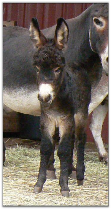 Wow.....this is our Pennington's first foal!! What a beauty Porter is, we could not be happier!! This little guy was born on a beautiful sunny Spring day!! I didn't even have the covering off Porter's nose before he was making little noices and wanted up!! I think Mariah would have been much happier to lie there for awhile longer, but she got up and started drying him off. I was excited to check Porter out......make sure everything was in order. It was, so I could stop worrying. Porter went out to play in the sunshine this morning.....don't you just love watching those baby donkeys explore their World for the first time?? Porter is such a pretty little boy, with straight legs and a short compact body. He has a nice pedigree & will make a nice herdsire or gelding. We are offering Cole Porter Black for sale. Visit our 'for sale' page for more information.