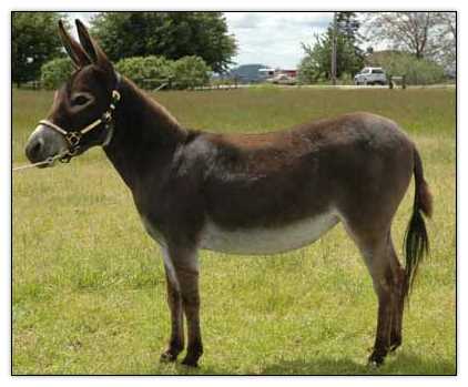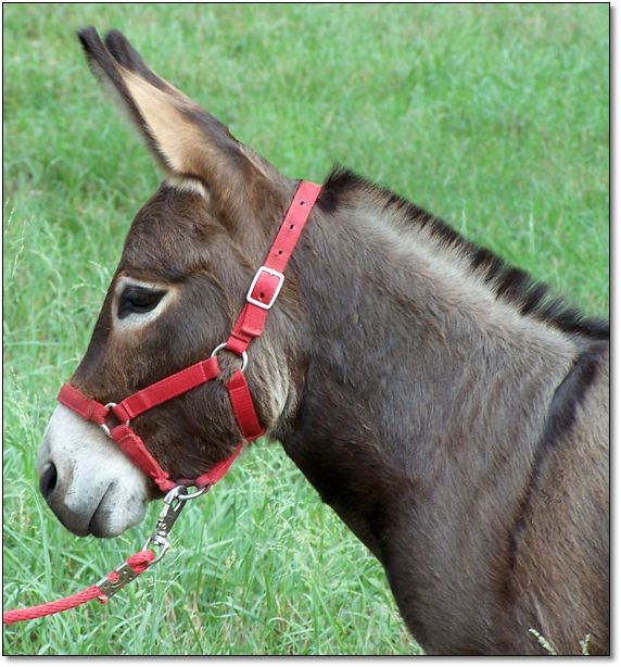 I don't say that a donkey is stunning very often, but this little girl truly earns the title. It's not a surprise since her dam is a Best of Breed winner and her grandfather is a National Champion and National Best of Breed winner. She knows she's beautiful and demands to be noticed at all times. |